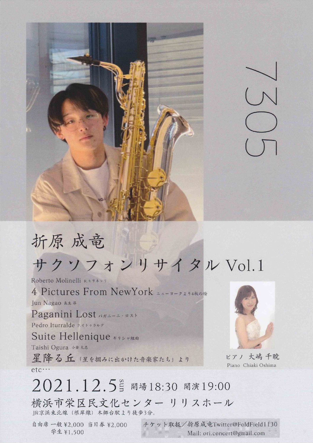 “Saxophone Recital Vol.1” performed by Seiryu Orihara.