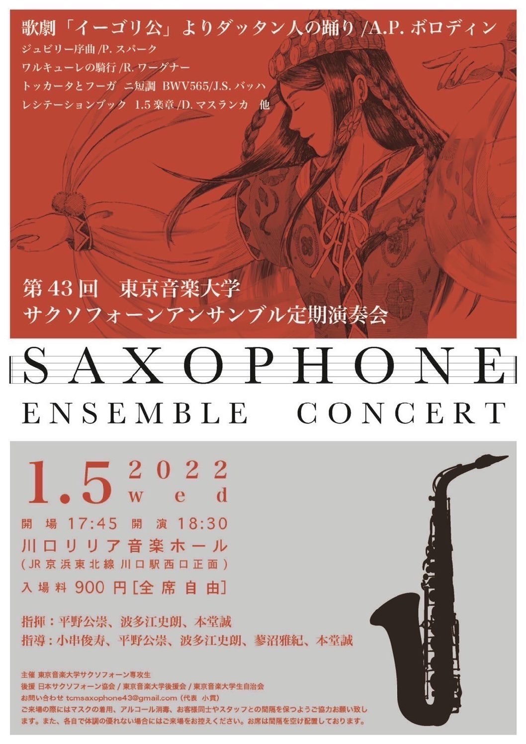 第43回 東京音楽大学サクソフォーンアンサンブル定期演奏会が開催されます。